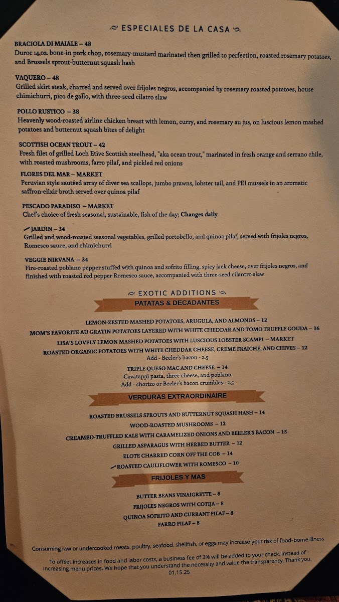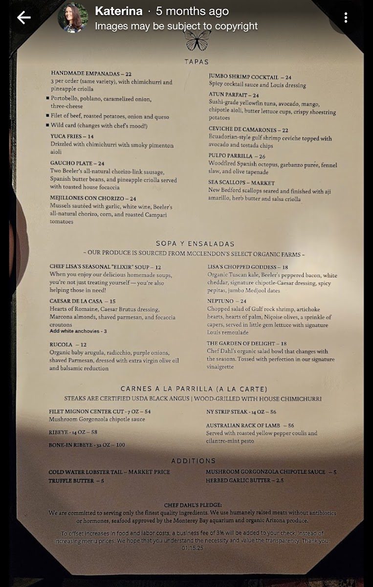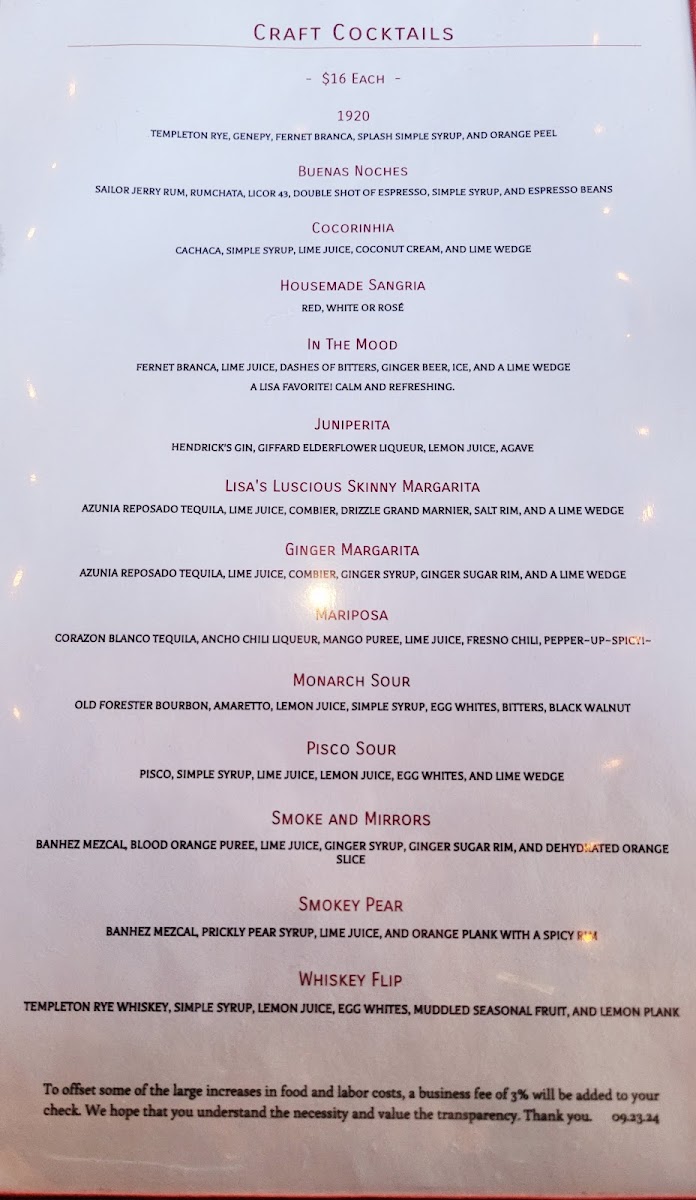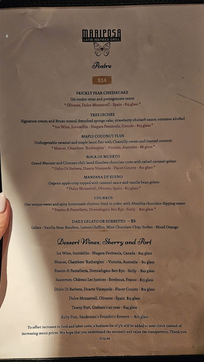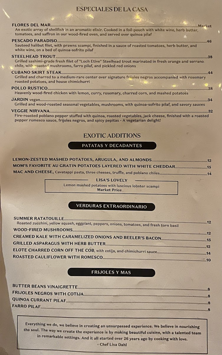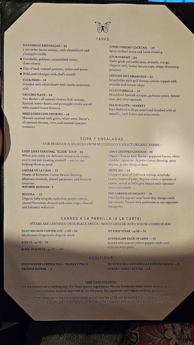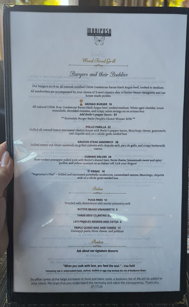 Mariposa Latin Inspired Grill Menu